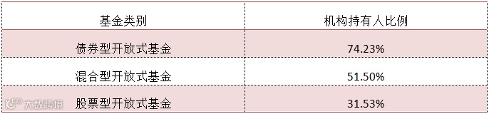 不同类型基金机构持有人比例