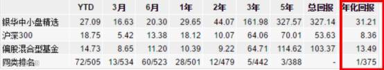银华中小盘精选成立于2012年6月20日,以“风格稳健”见长,在不同阶段收益具有较强的稳定性。Wind数据显示,该基金自成立来的每一个年度,在同类中的排名都是中上游,而且日积月累后的长期业绩更是显著——成立来年化收益高达31.21%,在375只同类基金中排名第1!