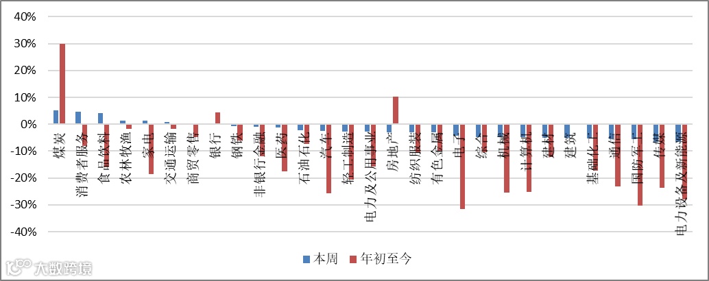 【市场复盘】上证指数周跌1.25%,深证成指周跌2.60%,创业板指周跌4.26%,周表现较好的行业为煤炭、消费者服务、食品饮料、农林牧渔。恒生指数周跌1.62%,标普500指数周跌2.13%,欧洲斯托克600周跌0.25%,日经指数周涨0.40%。