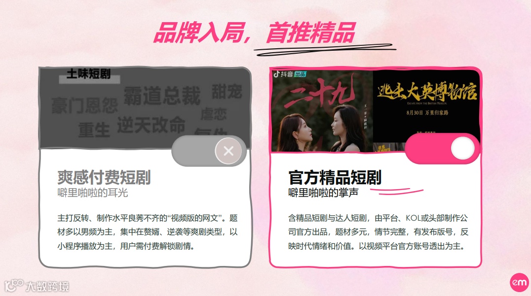 从选定赛道到上线宣发,品牌短剧营销是速度角逐,亦是策略博弈。为助力品牌稳步踏上短剧营销之旅,我们从起步阶段常遇五大难题入手,结合平台市场洞察与内容合作经验,展开初步分析探讨。