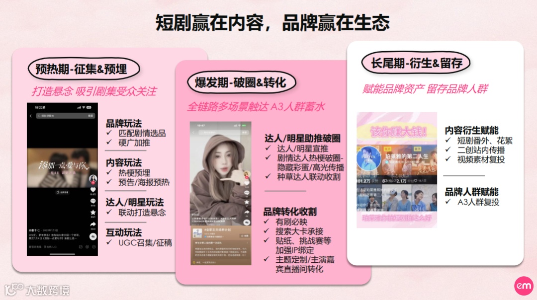 优秀的剧情是短剧火爆的关键,而将短剧的热度转化为品牌的成功,则需借助巨量引擎整合式数据与营销资源,融合品牌长短视频运营所长,充分发掘短剧商业潜力。
