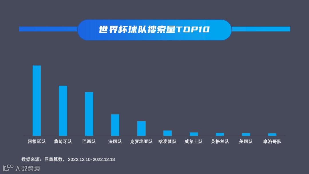 巨量算数数据显示,本周从球队搜索量来看,世界杯冠军阿根廷队不出意外的成为最受关注球队。