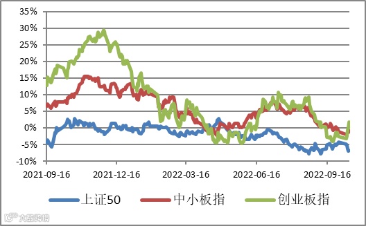 图1 | 各主要指数相对上证综指超额收益