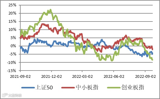 图1 | 各主要指数相对上证综指超额收益
