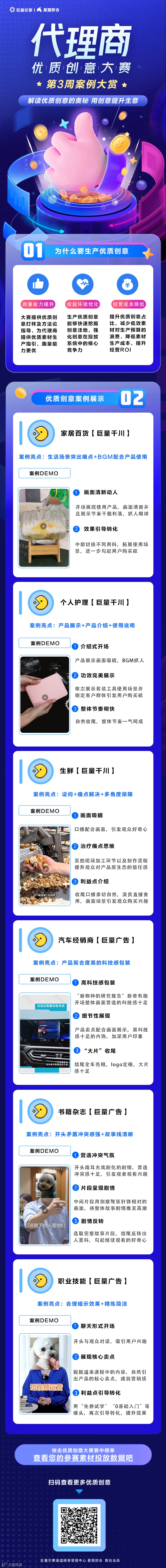 由 渠道销售管理中心和 星图即合 联合举办的「代理商优质创意大赛」持续进行中,本周上榜6例优质创意素材,聚焦家居百货、个人护理、生鲜、汽车经销商、书籍杂志和职业技能等类目。