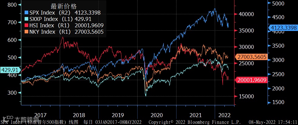 上周标普500周跌0.21%,欧洲斯托克600周跌4.55%,日经指数周涨0.58%。