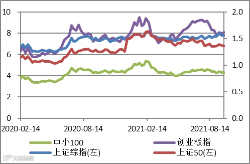 海外疫情有见顶回落迹象,若新的毒株带来新的反复,经济可能超预期下行;美联储即将释放Tapper信号,若后续加息和退出QE节奏超预期,可能导致全球股市承压波及国内市场;若中美关系再次恶化,可能影响风险偏好。