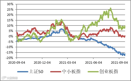 图1 | 各主要指数相对上证综指超额收益