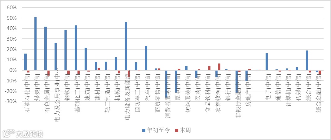 【电力设备及新能源】上周电力设备及新能源板块显著调整,主要原因有:1)近期部分媒体报道某动力电池龙头的行业格局面临竞争加剧的风险,引起市场较多的关注和担忧;2)纽约时报点名对中国大量补贴某动力电池龙头,叠加近期美国频繁将中国的生物科技和电子通信企业列入实体清单,市场担心美国会有进一步动作,但整体看中国新能源产业链全球领先;3)美国1.75万亿美元基建方案遇到较多阻碍,与此前市场一致看好美国需求成为2022年新能源车产业链的预期有一定偏差,此外此前智利大选左派上台可能影响矿企经营也有一定影响;4)近期光伏产业终端需求不佳,主产业链价格延续跌势,光伏龙头主动下调硅片价格,引发市场对于行业竞争格局的担忧;5)市场层面,中央经济工作会议强调“稳增长”基调,虽然市场近期表现不佳,但与稳增长相关领域则相对活跃和抗跌,“稳增长”交易的背景下前期涨幅较大、估值较高、预期偏高且机构仓位较重的成长风格,可能面临一定的回调压力,预计在“稳增长”交易降温后可能有所好转。