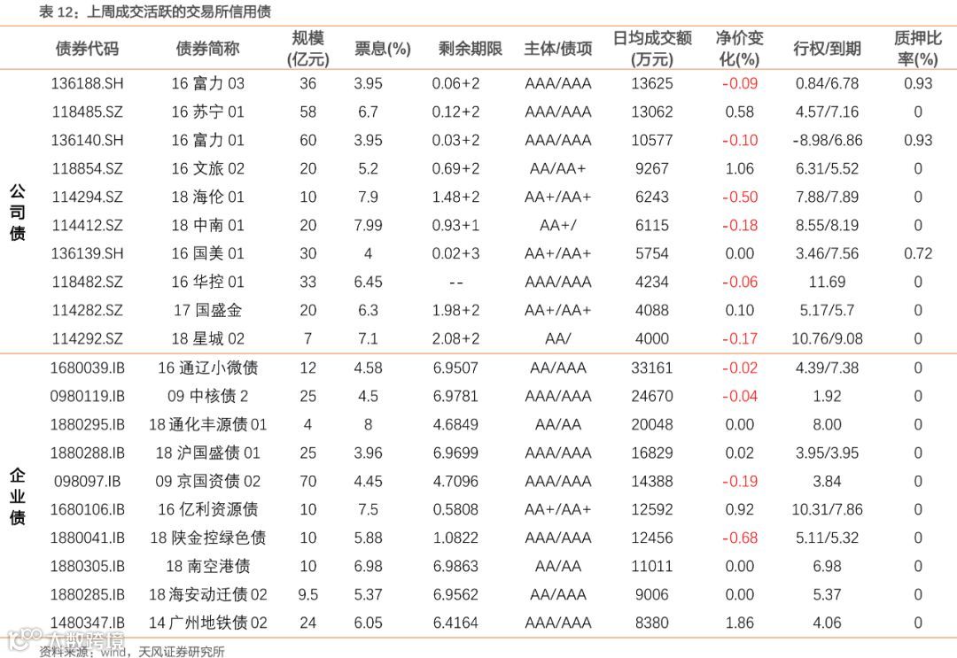 上周企业债合计发行128.5亿元,偿还95.587亿元,净融资额32.92亿元;公司债合计发行344.03亿元,偿还140.59亿元,净融资额203.44亿元。