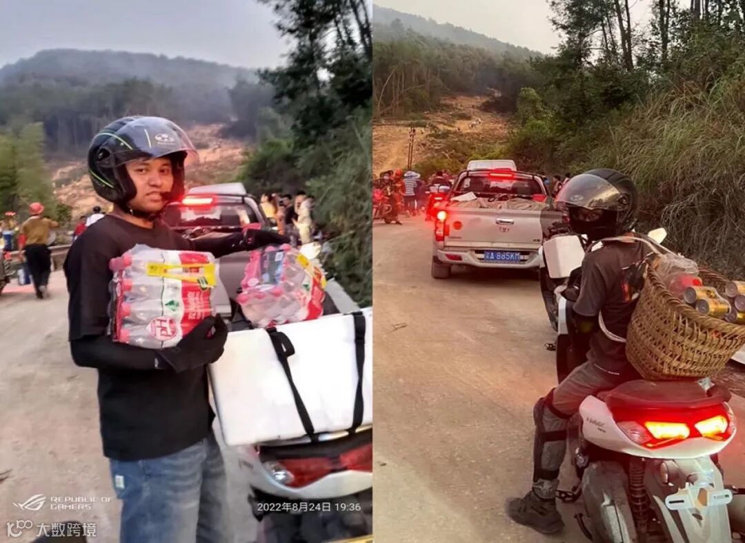 陈汕银在七塘村接到任务,有时候送人,有时候送物资,途中碰到了很多捐献者的物资无法运送,骑手们就用摩托车帮忙运输,遇到有要下山的人,就顺路将他们带回。
