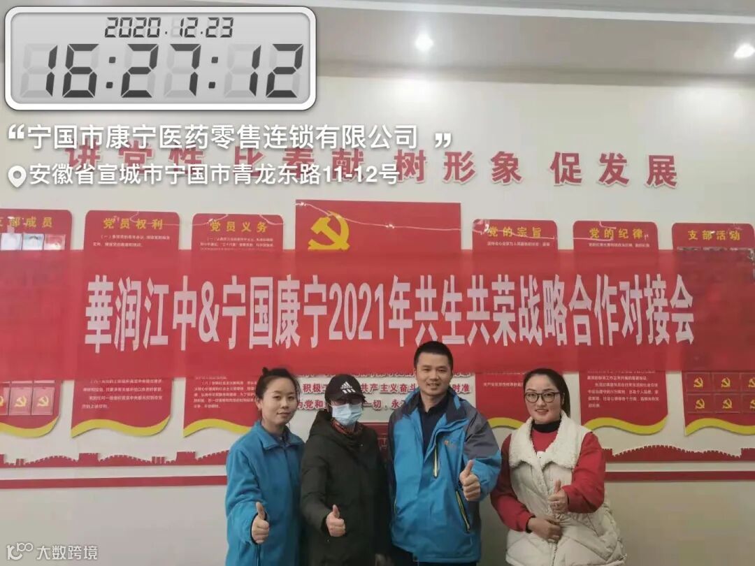 安徽市场深入贯彻,认真执行产品销售策略。2020年12月23日,安徽省经理王经钱,皖东南区域李迎经理行,前往安徽康宁医药零售连锁有限公司沟通对接2021年战略连锁签约。