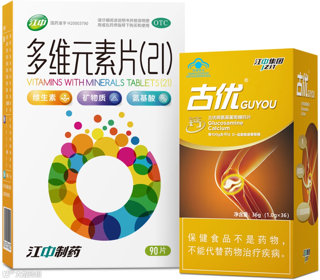 骨骼健康离不开氨糖和多种维生素的协调,华润江中OTC特别推出古优氨基葡萄糖钙片和多维元素片“1+1”黄金单品组合销售的形式,氨糖+维生素,保护关节,促钙吸收,更好地关爱国人骨骼健康的同时,也增加了终端门店的动销机会。
