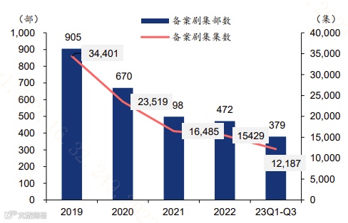 ► 影视板块三季度景气度明显复苏:影视行业态势逐渐回暖,电影方面,2023Q1-Q3复苏态势明显,2023年暑期档票房创档期新高;电视剧方面,2023Q1-Q3剧目备案数量/集数较上年同期有所增加。据国家广电总局数据,2023Q1-Q3全国电视剧拍摄制作备案剧目共379部/12187集,分别同比上升6.8%/5.9%。2023年三季度,影视板块实现收入47.61亿元,同比上升9.36%;实现归母净利润3.48亿元,同比下滑1.34%,降幅收窄。