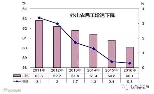 同样是在2012年,中国的劳动年龄人口首次减少了345万,之后每年都在减少。另外,从2011年开始,中国外出农民工的数量开始减少,今年更是出现负增长;此外,2016年进城的农民工数量减少160万人。我认为,中国的人口因素可以解释中国经济增长周期80%的变化。不少经济学家认为,中国的城镇化进程还可以持续十年以上时间。如果外出农民工数量不再增加,流动人口数量逐年减少,那么,依靠什么来提高城镇化率呢?