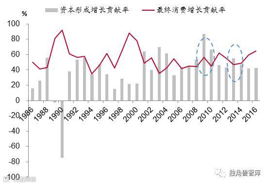 2013年,资本形成主要靠房地产投资增速的回升,而2016年虽然房地产的销售额创历史新高,但投资增速回升幅度不大,主要是在消化库存,所以,从资本形成的角度来看,反映出当今中国进入了存量经济时代。