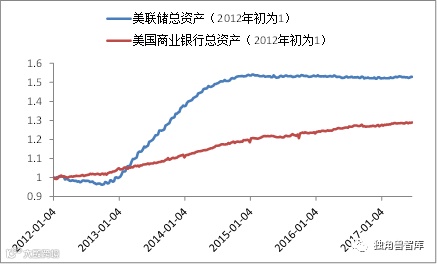 大家可能比较担忧美联储缩表导致我国资金外流,但这种担心可能是过虑了,当初美国推行三轮量化宽松的时候,美联储扩表之后商业银行并未跟进,如今其缩表对商业银行的约束力也不会太大。美联储QE路径是:美联储负债端增加货币发行,资产端购买国债或MBS;银行负债端增加存款,资产端增加现金。后续若银行使用现金进行信用扩张,那么货币会大量派生,广义货币大量增加。而从实际情况看,QE并未使得银行体系显著扩张。我们需要警惕市场的过度解读对于某事件会放大及高估其对经济的影响力。