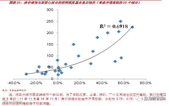 此外,高铁、地铁的大发展也改变了中国的经济地理版图,回归分析发现房价的反弹与到核心城市便利的程度呈现正相关,从高铁发展的角度来发现房地产投资机会,可以发现如嘉兴、南通、江门等城市的房价可能有进一步上涨的潜力,所以在整体稳健的格局中,结构性机会始终存在。