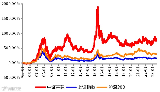 中证基建指数2018-2022年收益率为-26.98%、8.00%、5.18%、16.78%、-17.14%。