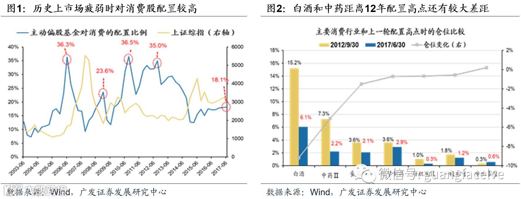 2、二季度最受关注的消费股板块配置水平依旧没有大幅上升,与历史上“弱市增配消费”的规律有所不同,主要原因在于板块内部配置分化严重。