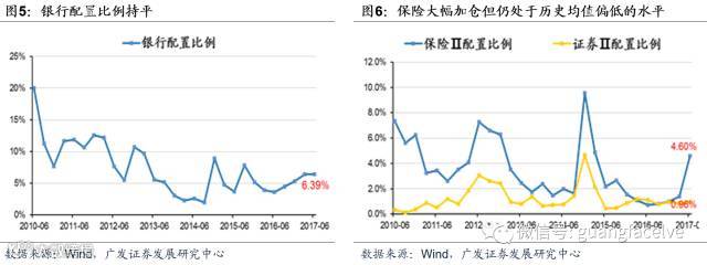 5、二季度基金对金融股的加仓趋势进一步确立,但目前银行和券商还处于低配状态;在追求盈利和估值、寻找“性价比”的投资思路下,未来金融股的配置比例有望继续上升。