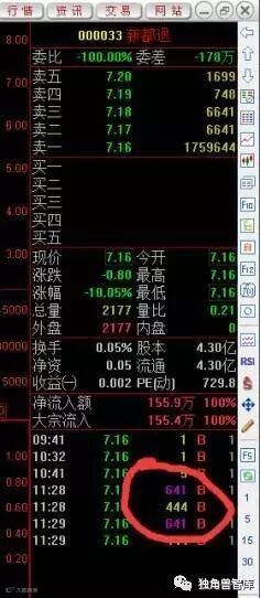 但临近午间收盘,诡异的一幕发生,大单连续出现,分别买入641手、444手、641手、444手,成交金额约155万元。按照市场普遍预期的15个跌停算,155万可能最终变为30万。