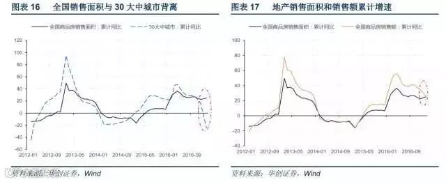 2017年需求向上的风险来自地产。价格幻象下,地产名义投资的高增并不意外,但地产销售大幅好于预期。地产销售方面需要关注两个变化:一是以往30大中城市的销售增速和全国销售增速高度同步,但1-2月30大中城市同比下跌25%,全国销售面积却同比高增25%。二是销售额累计同比在下降,而销售面积的累计同比是上升的。这都意味着明有更多三四线城市销售高增。考虑到价格效应,我们预计全年地产投资增速会在5%左右,实际上仅比2016年小幅下滑。当然需要密切关注下一步政策走向。