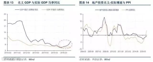 价格“幻象”营造需求持续改善的幻觉。价格推升下,经济L型,名义GDP却呈V型,投资等名义数据同样会异常靓丽。以地产投资为例,2016年地产投资实际增速为7.6%,假设2017年回落至2015年的2.8%,由于2017年地产投资价格指数将上涨2%以上,对应名义投资增速将高达5%左右。考虑到2016年土地出让金增速高达19.3%,地产新开工增速也有8%,土地购置费的延后支付和现有施工项目原本就对2017年的地产投资有一定的支撑,2.8%的实际增速应是保守的估计,相应的名义增速较2016年下滑的空间非常有限。