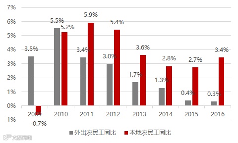 图:本地农民工增长显著高于外出农民工增长