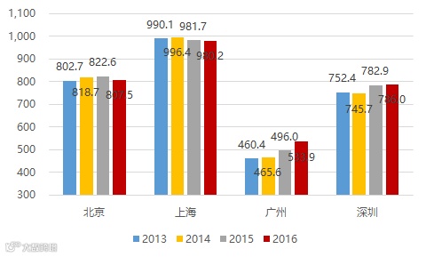 图:一线城市常住外来人口变化(单位:万人)