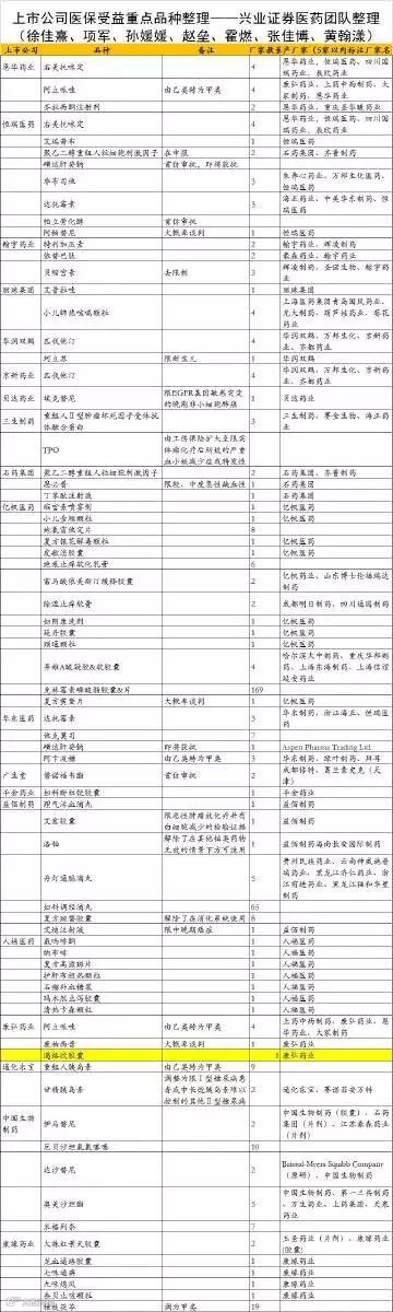 对新版医保目录的解读,工作量非常大,我们团队努力去完成,我个人这几天也都会加班加点。当然秉着一直公开分享的精神,我们有成果肯定会发表的,这里先上一张券商的新版目录研究图,当然券商还没有时间去写每个药品的潜在市场销量空间,先凑合看着吧。