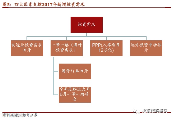 地产销售是可能下滑,但是地产投资(完成额)取决于之前一两年的新开工,存在滞后效应,所以今年的地产投资应该是较稳定的。即便地产新开工真的不行了,我们仍然有四大因素支撑2017年新增投资需求。