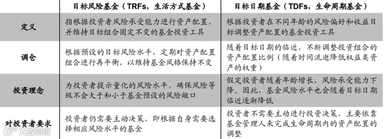 个人投资者自己在做养老投资时,缺乏明确完善的资产配置规划,而养老目标基金就是为了帮助不同的人群做好养老资产配置。其中,目标日期基金与目标风险基金在调仓策略、投资理念和对投资者的要求等方面,都存在着显著的差别。投资者需要根据自己的需求进行选择。