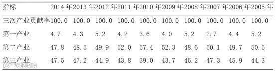 表1 最近十年全国三次产业对GDP的贡献率(%)
