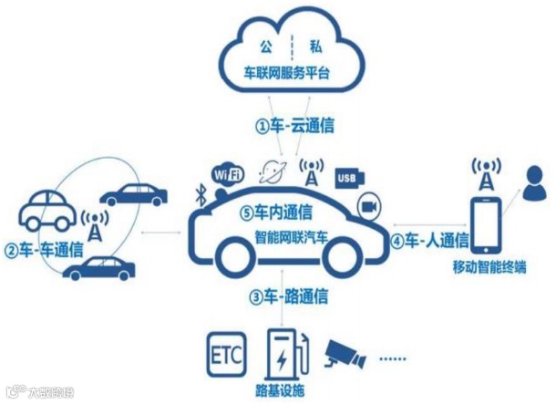 网联化主要指通过融合现代网络通讯技术实现车内、车与车、车与路、车与人、车与服务平台的全方位网络连接,也就是我们常常说的“车联网”。