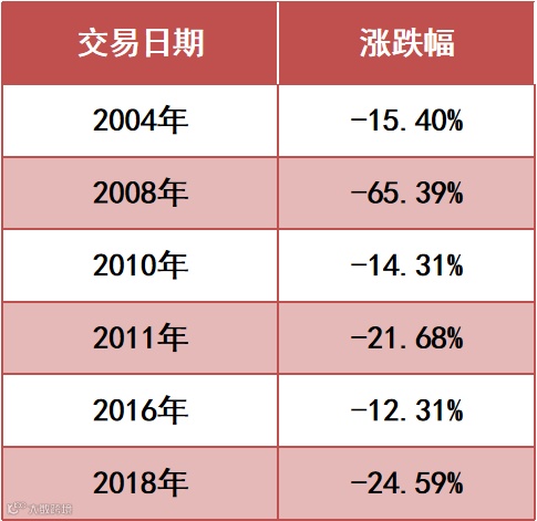 2004年-2021年上证指数多个年度跌幅超过10%