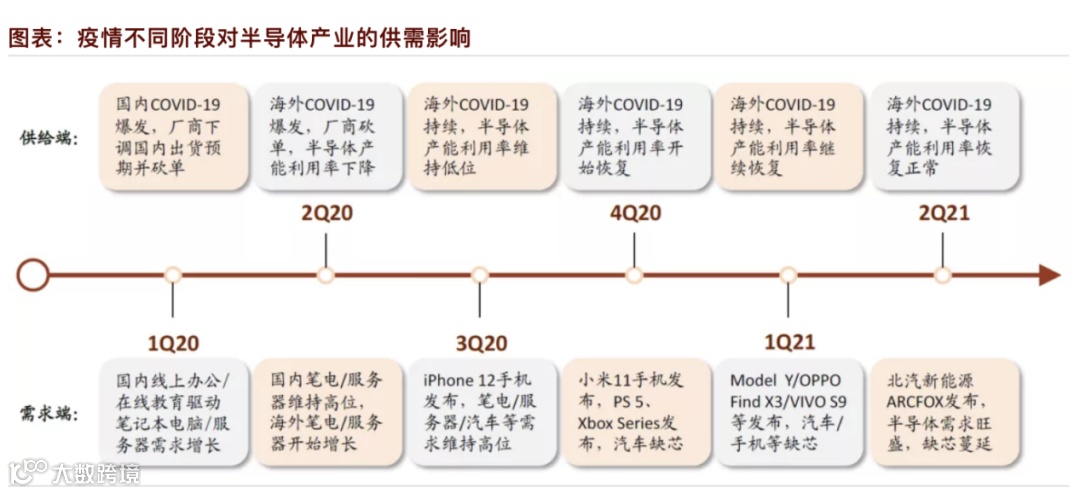 据中金公司分析,此次芯片缺货并非单一种类的芯片缺货,而是汽车、消费电子、工业、安防等各领域各类型芯片的全方面缺货。并且此次芯片缺货是由多重因素造成:一是COVID-19、暴雪、地震、火灾等意外事件减少芯片有效供给;二是汽车、手机等领域对芯片需求显著增长;三是全球晶圆产能集中度提升,扩产较少,难以满足爆发的需求。
