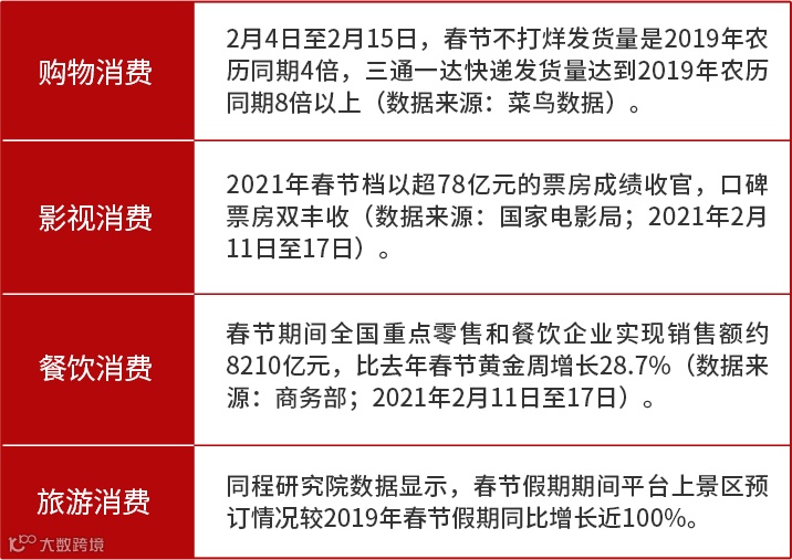 就地迎新年,春节不打烊。逛商场“买买买”、周边游“耍耍耍”、休闲娱乐“哈哈哈”、特色年夜饭“吃吃吃”等等,都组成了多姿多彩的牛年新春。也让春节期间的购物、影视、餐饮、旅游消费,诞生出一串串红火的消费数字。