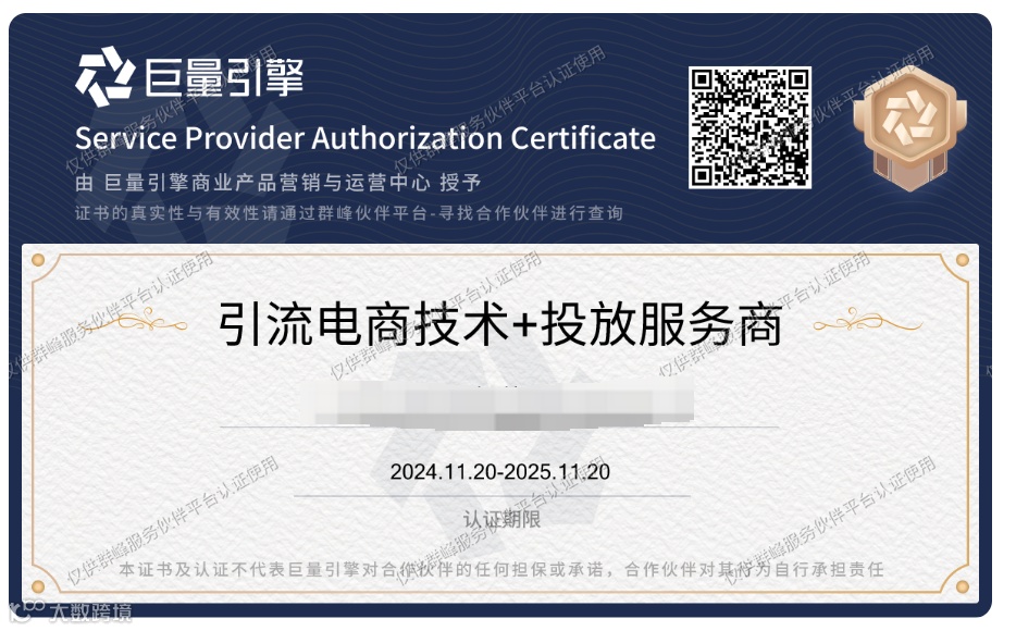 本次对服务商的认证筛选,要求既有客户服务经验、技术创新能力、又有完善的风控机制,维持“技术”能力认证、“技术+投放”能力认证两种认证身份,致力于认证通过素质优良、技术专业、服务能力突出、风控链路完善的优质引流服务商。经过前期的报名、初筛、材料评审环节,历时1个月余,2025年引流电商认证服务商名单公示啦,期待与各位合作共赢,共同促进CID引流业务的发展!