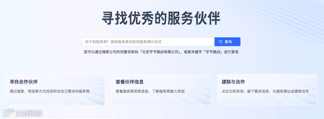 通过以下网址,进入「巨量引擎群峰服务市场」官网查询:fuwu.oceanengine.com