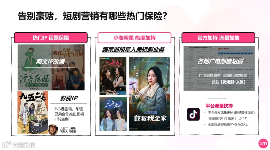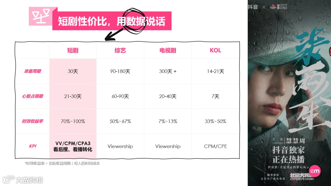 无论是时效收益还是数据表现,短剧作为流量新贵,都展现出优越性价比。