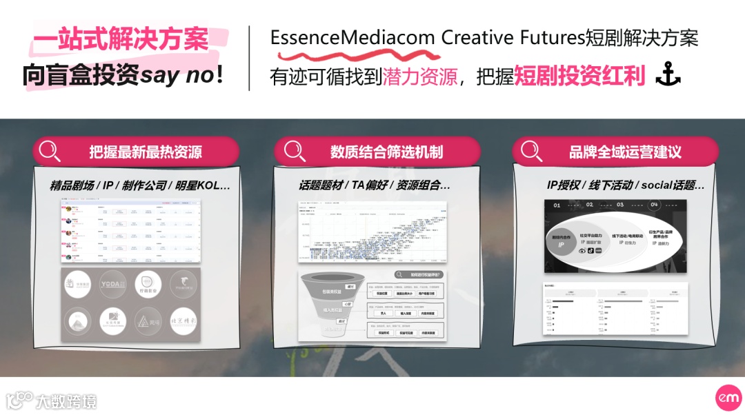 短剧营销战场硝烟弥漫,Essencemediacom Creative Futures内容营销团队也将持续深化与巨量引擎生态业务团队在短剧营销方面的合作探讨,协同通过数据分析与突破思维,抓住短剧营销的机会,为品牌开辟讲述故事的新途径,并以创新的视角和精确的策略,在短剧市场中乘风破浪,共同实现营销的新高度。