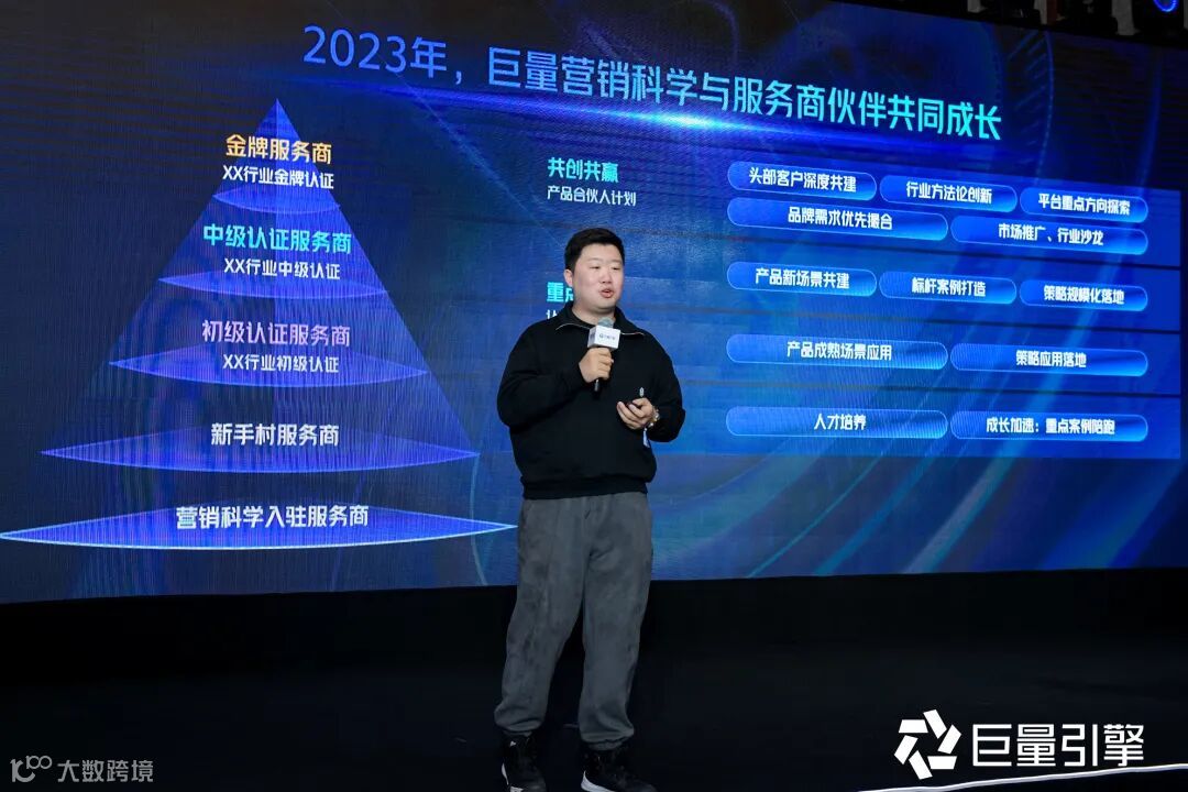 营销的本质是对用户的影响,面对寻找核心TA难,优化创意内容难,以及提升品牌口碑难的现状,巨量引擎营销科学服务生态负责人李家轩介绍了汽车行业服务商携手巨量云图共创的成功案例,展示了巨量云图助力营销全链路可量化、可诊断、可优化的能力,不断推动企业生意可持续增长。同时营销科学的持续探索,离不开生态伙伴的支持与共建,在此基础上,营销科学推出了服务商分级认证的成长进阶路径,以及分行业分赛道的评级体系,借此助推营销科学良性生态的养成。后续巨量云图将不断助推代理商能力提升,携手品牌开启汽车营销新时代。
