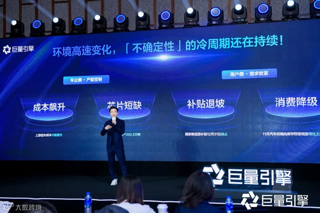 除了宏观的汽车行业变化外,大会还邀请巨量引擎渠道经营策略负责人李玮为代理商伙伴从渠道视角介绍了巨量引擎渠道汽车行业的生态现状和未来机会。李玮指出,在2023年的新环境下,需要代理商通过多元业务布局、业务能力强化,不断在存量市场中探索新的增量。从品、效、销的产品能力切入,从营销场景升级的背后,清晰地看到未来的营销机会点,在探索新节点IP合作、星品效一体化联动、以及共创新玩法上,携手助推双赢之路。最后,李玮还分享了巨量引擎渠道汽车2023年政策的变化,期待新的一年与代理商携手共擎新机会,"汽驱“并进向未来。
