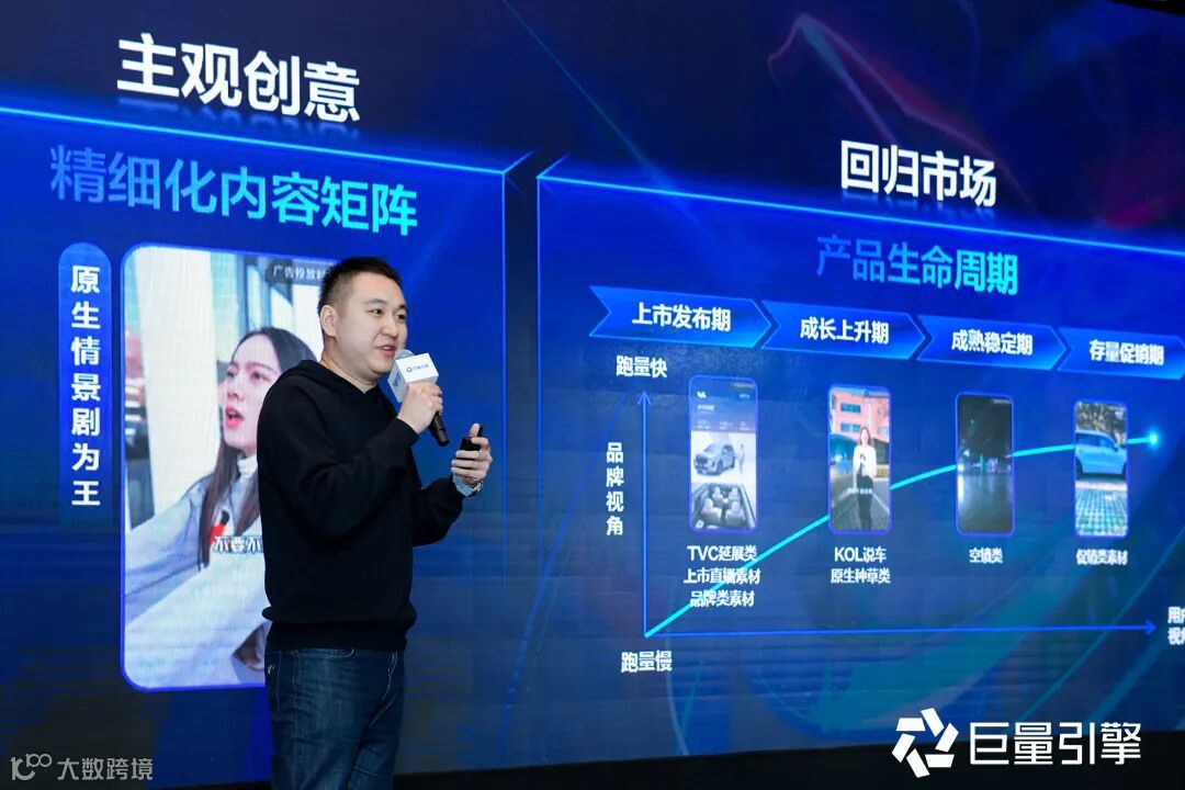明确了品牌种草经营方向后,如何高效的进行效果布局?面对从广告到经营,从产品浅层到深层目标的变革,巨量引擎垂直业务汽车行业运营负责人徐剑峰在此次分享中提出种收一体的经营转型策略,不断推动线索成本降低、后效提升、跑量优化的竞价产品创新,助力汽车行业提质增效。同时在探索流量蓝海的原生广告,以及创意素材优化策略的加持下,全面升级线索经营方法论,携手品牌生意增长。