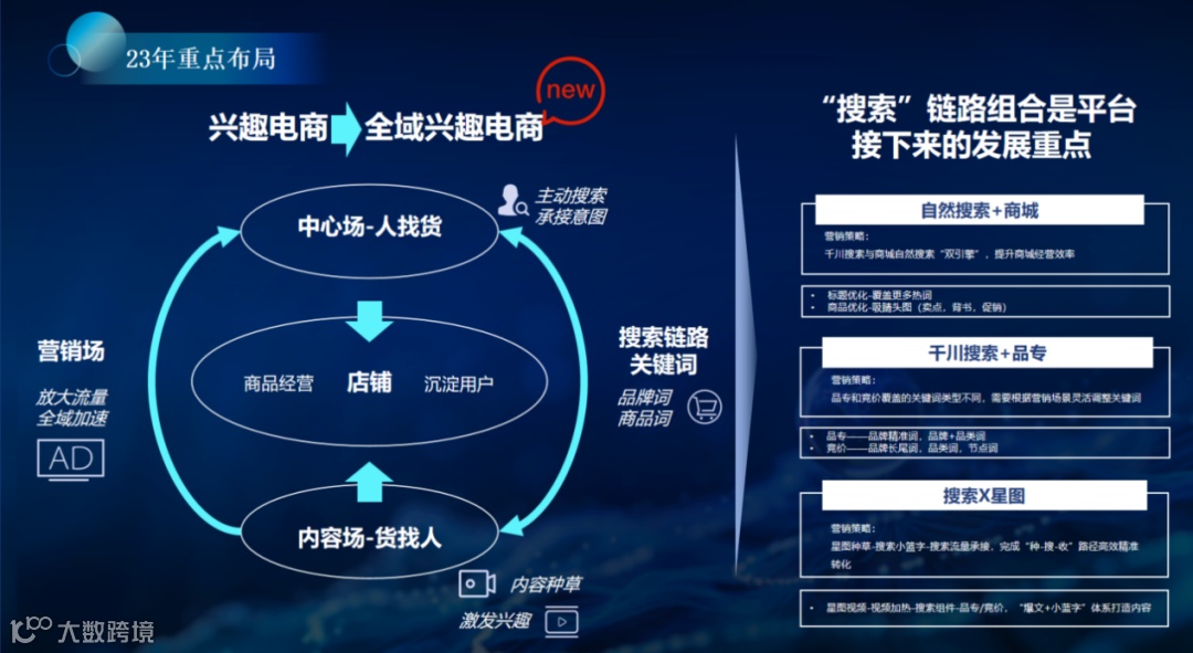 回溯抖音电商的发展之路,抖音兴趣电商通过丰富的短视频与直播内容激发兴趣,已验证了“货找人”逻辑的可行性。随后,为了升级为全域兴趣电商,抖音搭建了货架场景,加强了抖音商城和搜索的运营,进一步提升了人们的复购粘性,全面补充了“人找货”的能力。