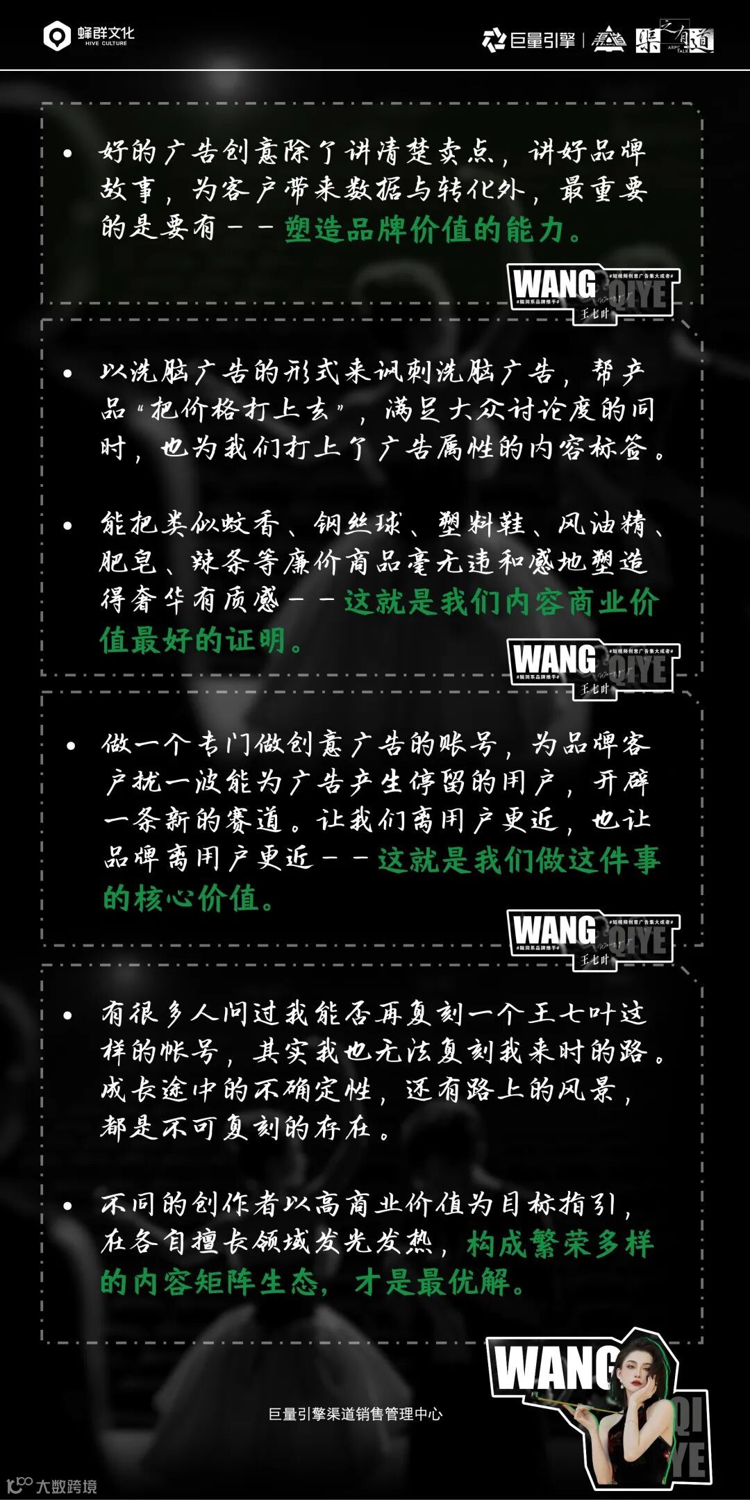 没有华丽的出场,这位当下备受粉丝和品牌青睐的“创意广告女王”,面对直播间的字节同学,像老友见面一般开始了她的分享。