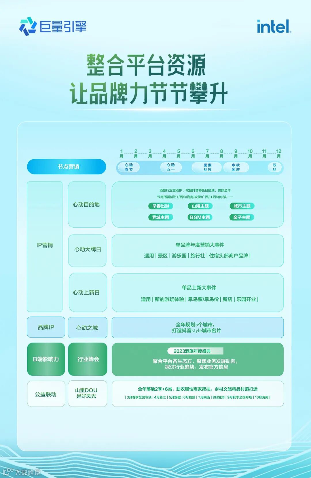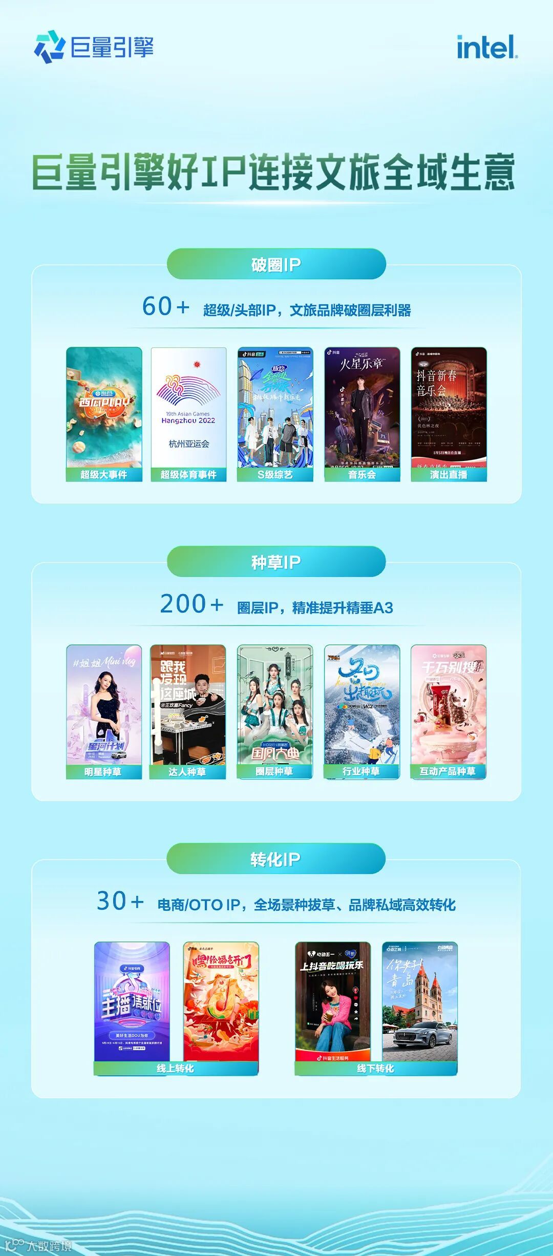 智汇山河添锦绣,文旅向新再出发,「2023巨量引擎文旅生态大会」携手数字化合作伙伴英特尔、美好文旅出行官沃尔沃汽车和美好文旅畅饮官麦咖啡等品牌,用科技助力文旅焕发新生机,帮助更多文旅伙伴做好品牌、服务好用户、提升生意经营。