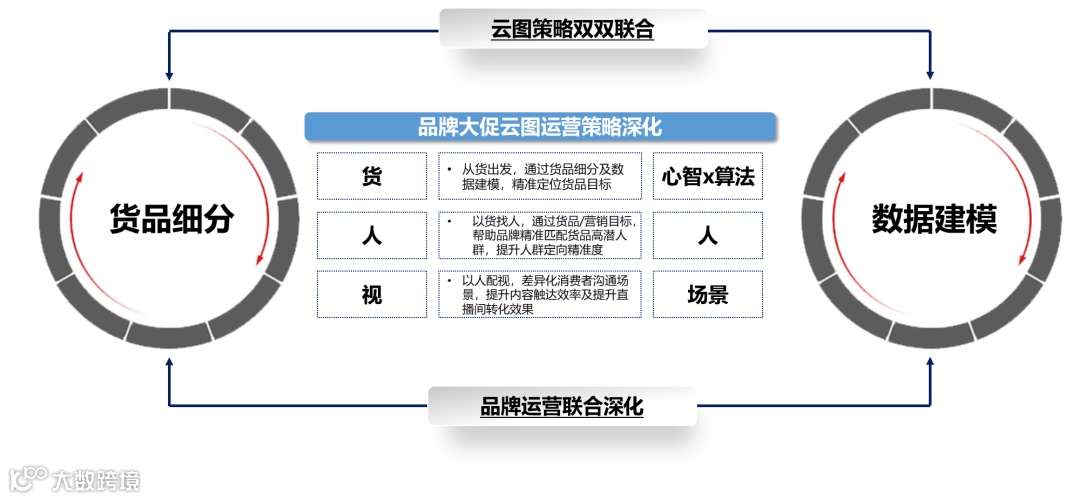 通过对现有货品矩阵进行拆解细分,结合云图数据建模能力从人(Consumer)、货(Commodity)、视(Content)3大视角出发,打破品牌运营困局,实现运营策略联合深化。
