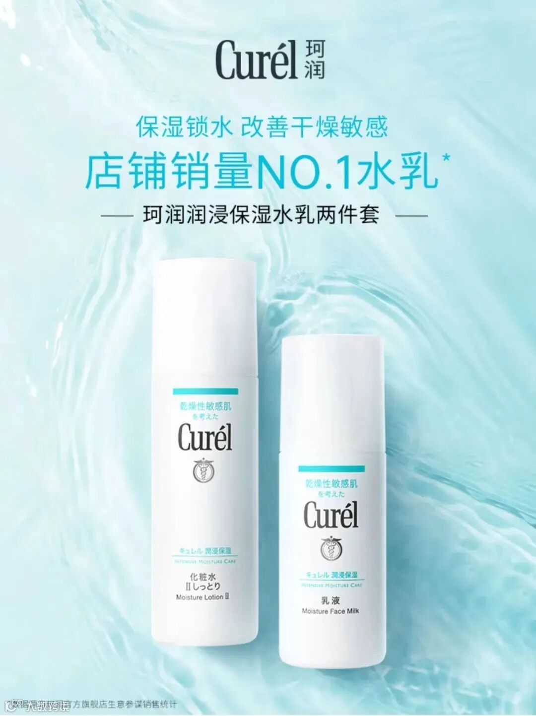 珂润水乳套装,温和无刺激,干敏皮可用,清爽不黏腻,妆前最适宜。